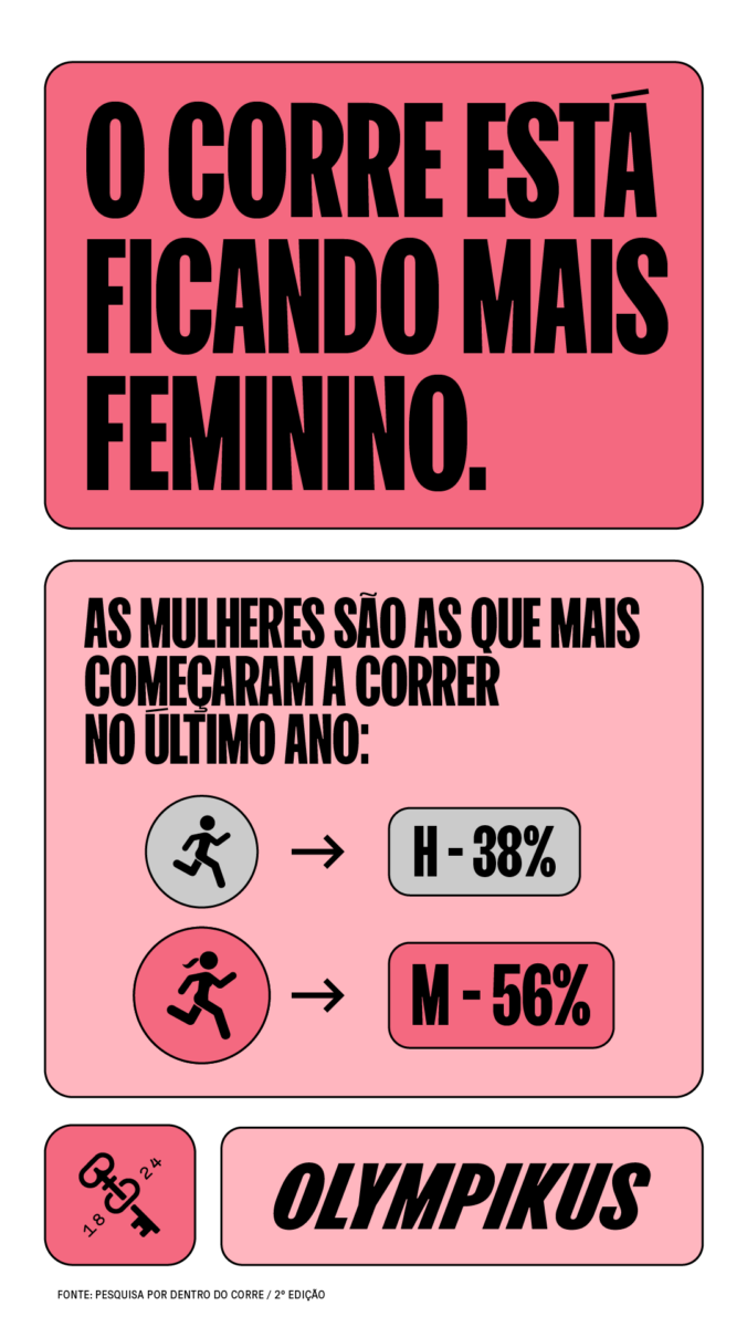 “A corrida no Brasil está de cara nova. A pesquisa Por Dentro do Corre mostra que ela deixou de ser um esporte focado apenas em performance e passou a fazer parte da vida real das pessoas. Hoje, correr é sobre pertencimento e bem-estar. O crescimento da presença da classe C, dos jovens e das mulheres entre os corredores reforça esse movimento de democratização. A corrida está mais acessível, mais diversa e cada vez mais conectada com o cotidiano do brasileiro”, comenta Márcio Callage, CMO da Olympikus.